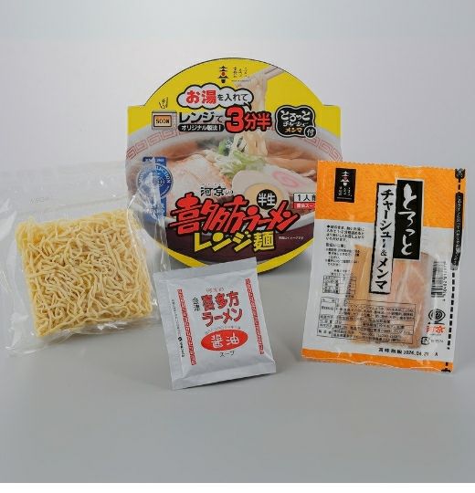 お湯を入れて3分半、電子レンジでおいしい喜多方ラーメンがお手軽にお召し上がりいただけます。