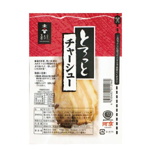※2024年2月1日新発売 手間暇をかけた自家製とろっとチャーシュー自慢の自家製チャーシューを使いやすく1枚切にパックしました。トロッと柔らか、常温保存で使いやすいチャーシューです。
