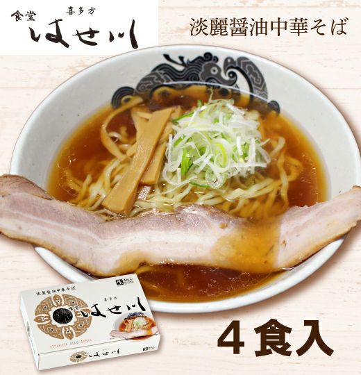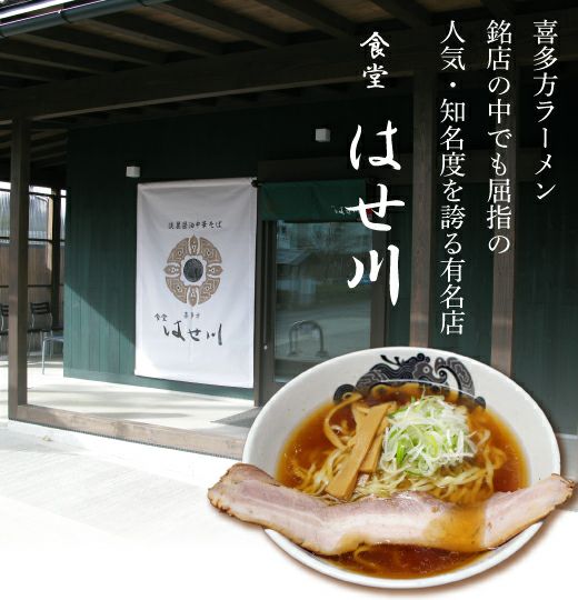 喜多方ラーメン銘店の中でも屈指の人気・知名度を誇る行列店「食堂はせ川」 鶏と青口煮干しをベースに淡麗なのに深みのある飽きの来ないスープ。 モチモチの熟成太麺でお召し上がりください。 喜多方ラーメンの銘店「食堂はせ川」と河京がコラボした限定商品! ぜひ一度お召し上がりください!