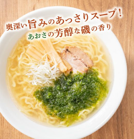 あおさ入り塩ラーメンを購入食べてみましたら、あおさと塩味がマッチ!していてとても美味しかったです!!あおさの薫りと色と何とも言えないくらい幸せを感じました。